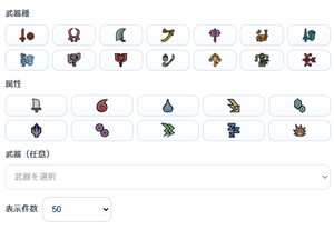 • 武器名(※オプション、但し指定がないと検索に時間がかかる可能性があります。)