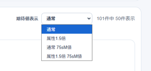 スキルの発動率を変更して検索することで該当の発動率で計算された期待値で検索結果が表示されます。
