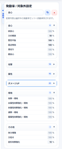 装備構成(エディタ)と同様に発動率を設定やプリセットの選択をすることができます。(詳細は装備構成を参照)
