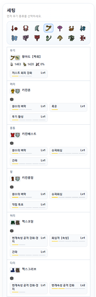 1. 상단 아이콘에서 무기 종류를 선택