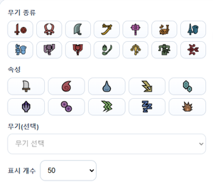 - 무기 종류와 속성 등의 조건을 설정합니다
