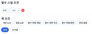 무기 종류와 스킬 조건을 지정하여 최적의 장비를 찾을 수 있습니다。