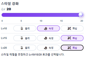 스타일 강화의 Lv와 마일스톤을 지정하면, 스타일 강화에 대응하는 무기는 해당 Lv의 강화 상태로 기대값이 계산됩니다。