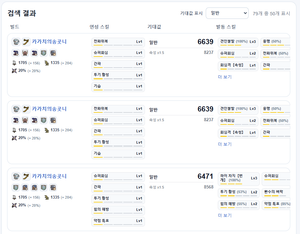 설정한 레벨 이상의 스킬을 가진 장비 구성이 검색됩니다。